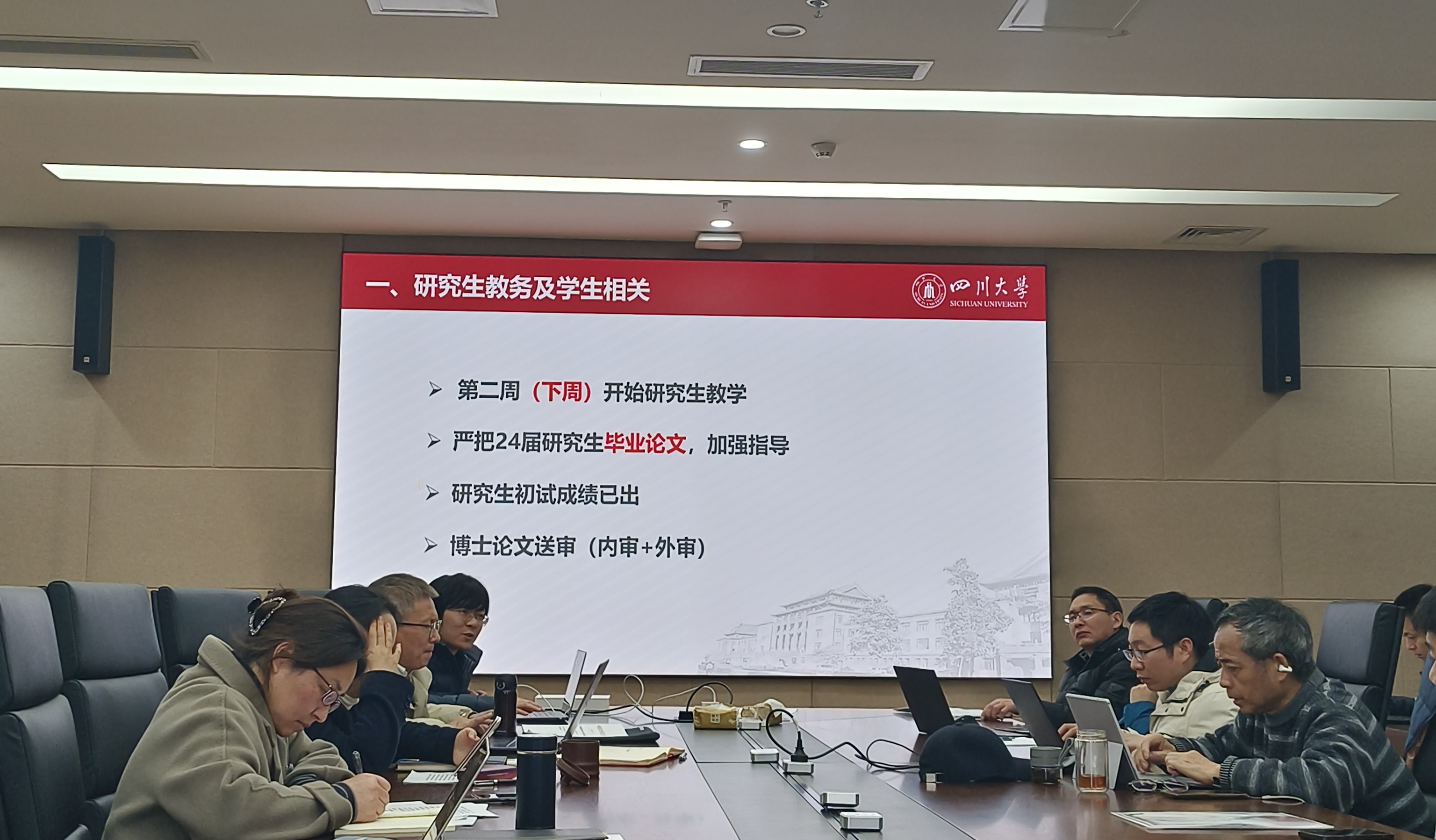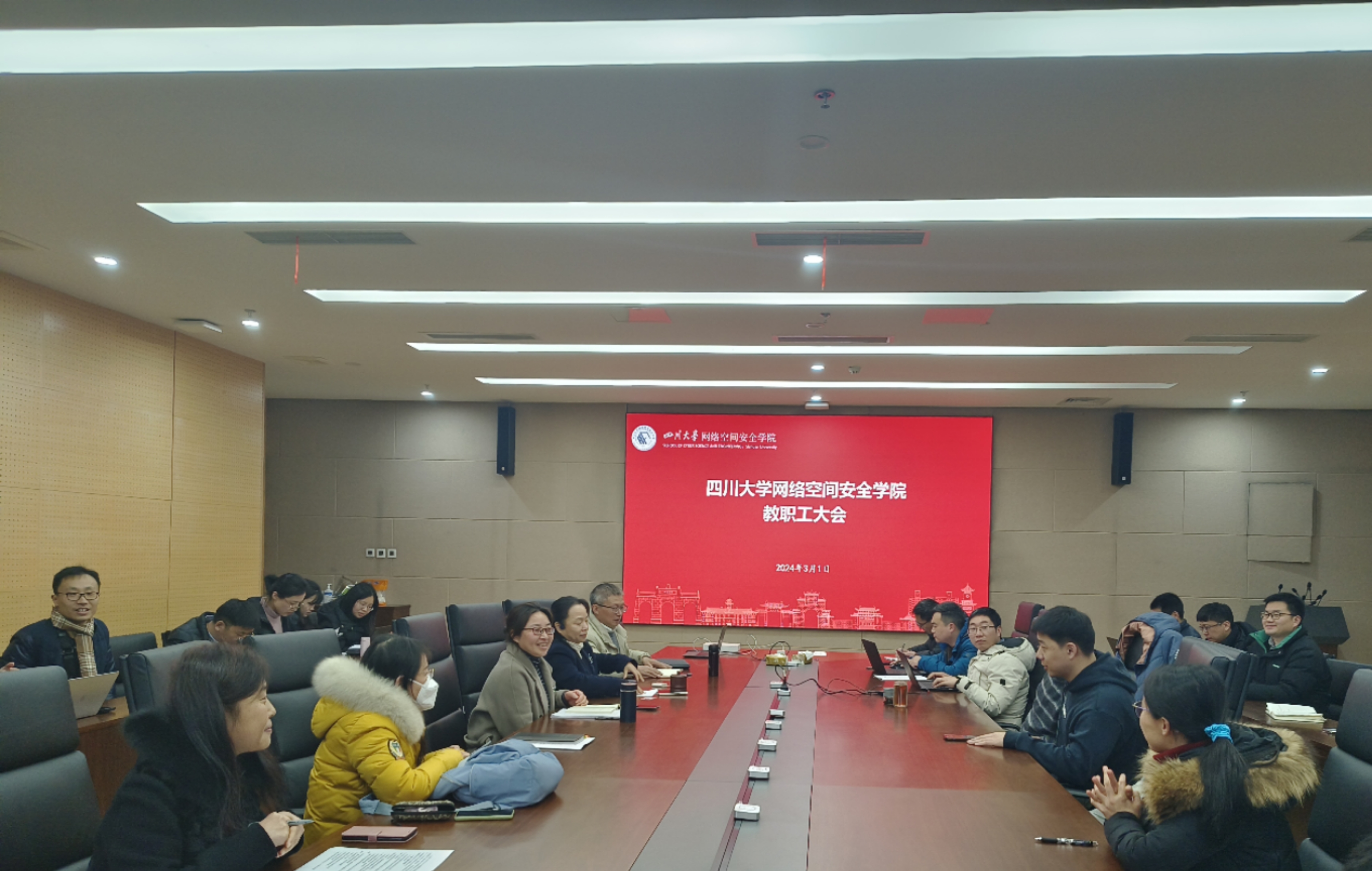 2024年3月1日下午,今年会官网在江安校区多学科交叉研究创新大楼821会议室召开学院新学期工作布置会,学院领导班子成员和全院教职工参加大会,会议由党总支书记秦燕主持。